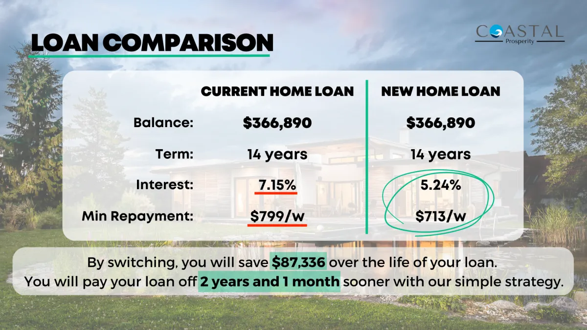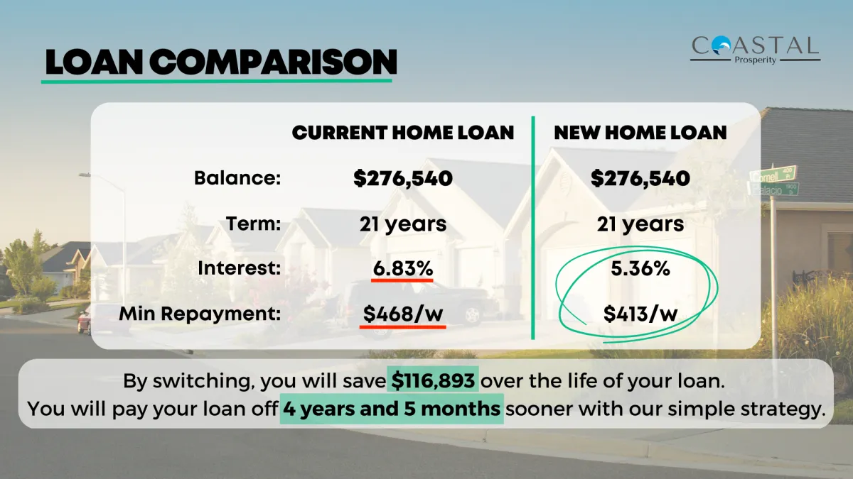 I'm talking about you saving hundreds of dollars each month and wiping (at least) $73k off your home loan.
